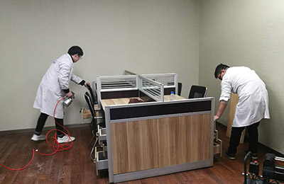在了解到办公区域的污染源头后,我公司采取了计划施工,先是对粉刷的墙面以及整个办公区域的椅子喷涂利纯纳米光触媒,光触媒是最为安全、高效、安全的除甲醛产品,对于数量巨大的办工作,使用甲醛清除剂清除,而对于会议室的地毯,则采用高温熏蒸的施工方式,可以快速渗透,快速除甲醛,为业主清理甲醛,还顾客一个安全,健康的生活环境是我们全体工作人员的责任。