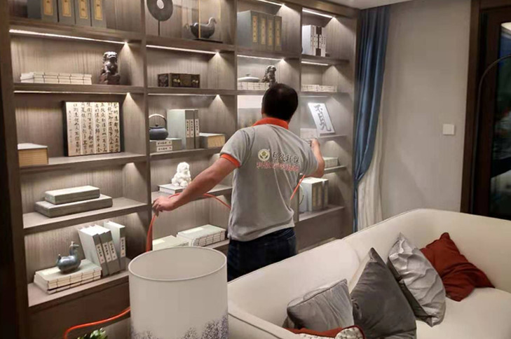 施工方案:根据该售楼处的具体情况,公司技术人员以及施工人员针对办公家具和柜子及木饰面使用甲醛清除剂经过高压雾化之后均匀喷涂在污染源的表面;对油漆味相较严重的门窗使用苯清除剂从根本上清除油漆味,在室内墙面、窗帘等立面利用利纯纳米光触媒产品进行有效处理;对于部分沙发、座椅、软包等污染源头,采用了异味清除剂进行处理,消除其甲包含的醛和TVOC等污染物,采取专项专治,彻底清除有毒有害物质?;垢突О踩?、健康的工作环境。