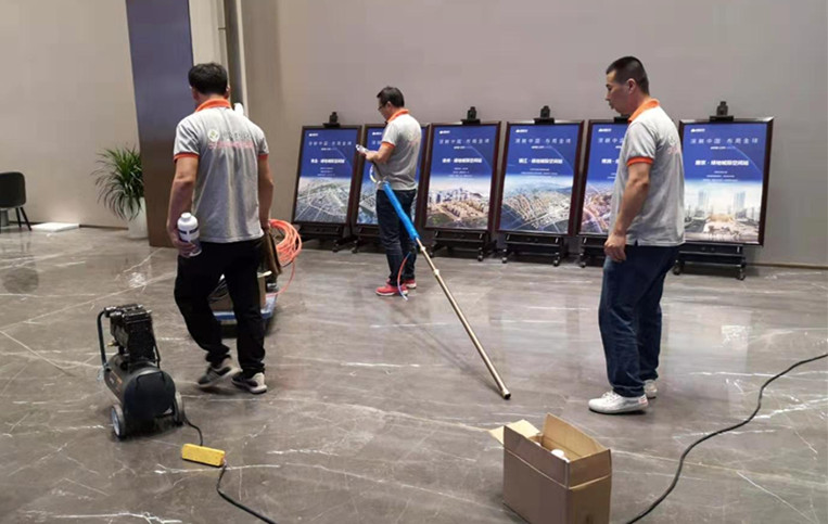 工程施工点介绍:安徽广德绿地香港城际空间站售楼处(由杭州除甲醛公司负责),因售楼处为新装修是全新装,由于装修刚刚完工进驻时间比较急加上内部通风效果不好,最近该售楼处负责人请了专业空气检测机构进行了室内空气环境检测,其中部分办公区域、展厅、样板房等多处都有甲醛超标比较严重的现象存在,经检测公司工程师推荐由我公司为其做室内空气环境净化,并要求在治理一个星期后的甲醛浓度降低到国家规定值为0.10mg/m3,在这么短的时间内这对我公司施工工艺和技术有着较大的挑战,公司骨干组织技术人员对其装修材料和结构特点,做了严谨详细的施工方案。