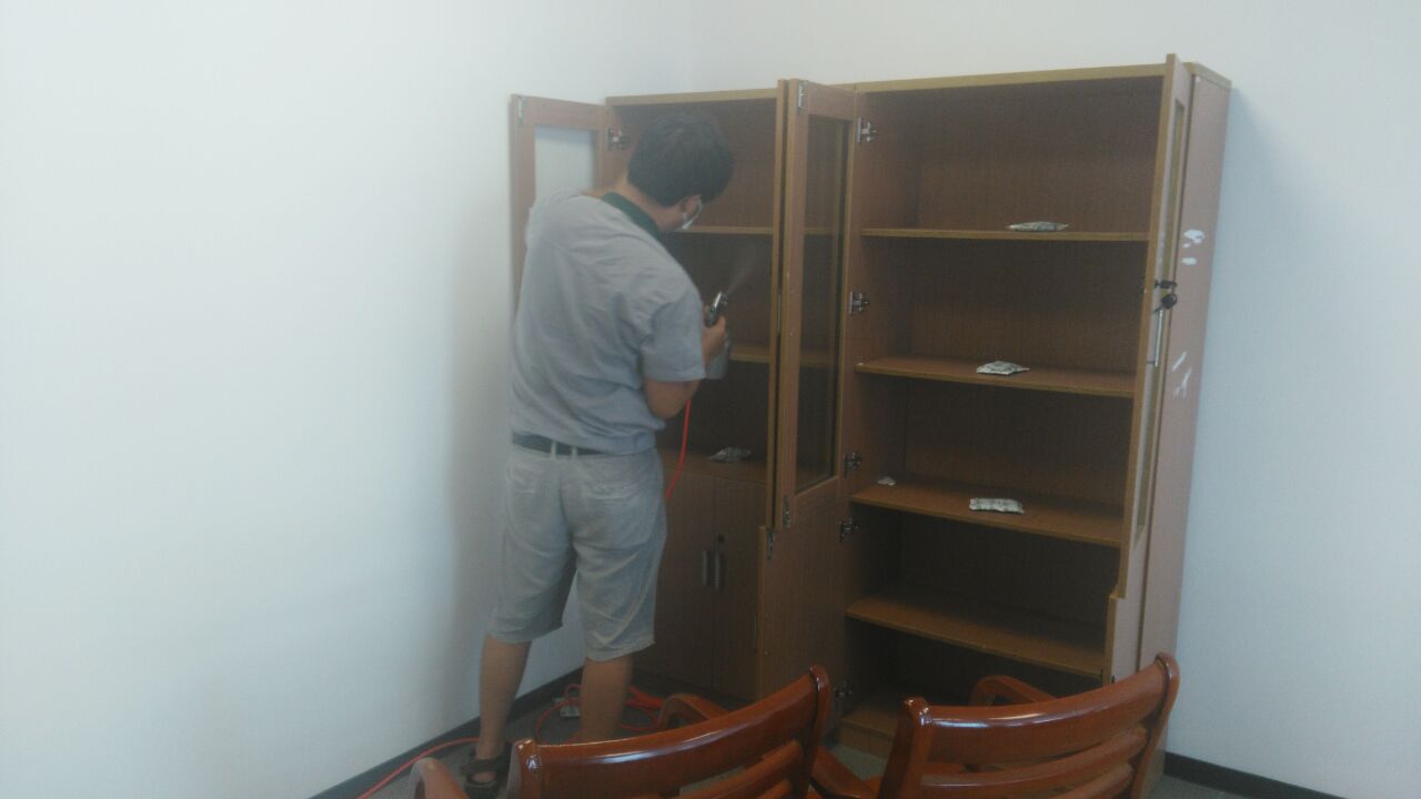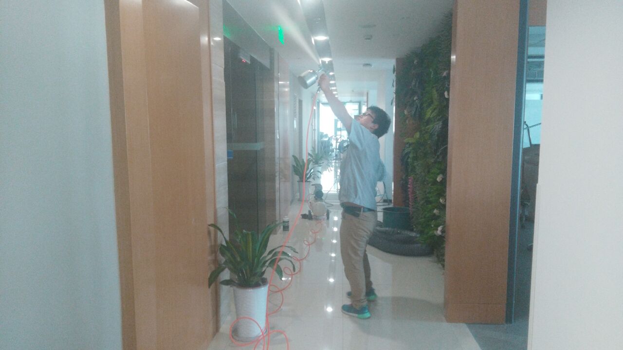 针对其结构特点及污染情况,我公司技术及施工人员经过认真考察,制订了合格的施工方案,针对易散发甲醛等有害物质的污染源,重点治理,对重新粉刷的墙面使用我公司研发的利纯纳米光触媒进行甲醛清除,这些地方光照量较充足,便于光触媒对甲醛的分解,对于刷漆的办公家具、书桌、储物柜、木门、地板等采用甲醛清除剂进行处理,针对不同污染物,做分别处理。经过我公司重点治理,一周后复查结果各种有害物质含量均已达到国家标准以内,各项指数均达标??突г惫じ芯跗睹飨韵抵髑謇砑兹?,还顾客一个安全,健康的生活环境是我们全体工作人员的责任,下面为施工现场照片: