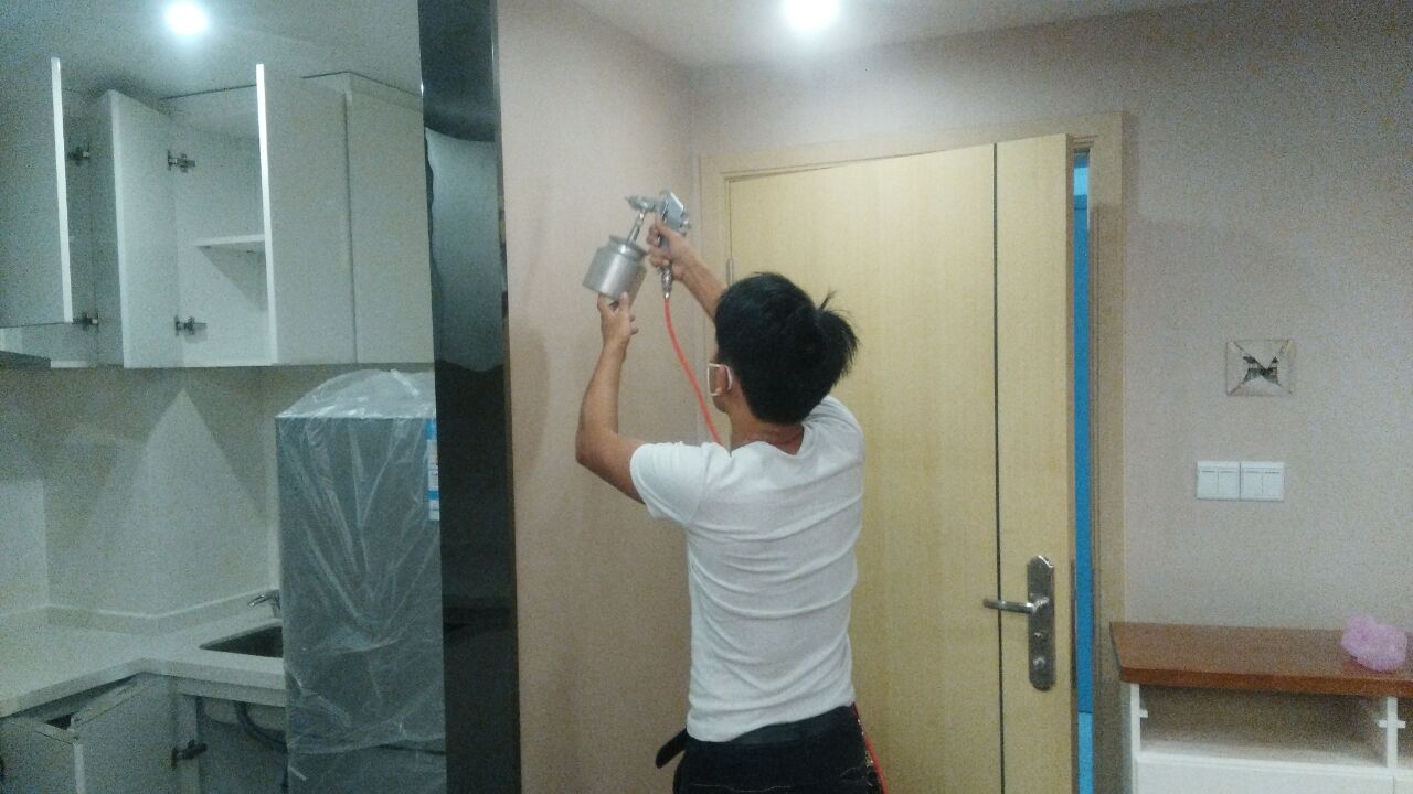 治理方案及施工:公司针对其房屋结构特点及污染情况,我公司技术及施工人员采用专项治理的施工方案,针对其墙体立面(墙纸)、沙发、橱柜等污染源表面使用我公司自主研发的利纯纳米光触媒进行甲醛清除,采用高压雾化喷涂的方法,最大限度消除室内的甲醛污染,对于重新刷漆的家具、门、书架、衣柜等采用甲醛清除剂进行处理,对于床底部位则使用生物酶异味清除剂,针对不同污染物,做全面治理,治理后的室内环境达到国家规定的室内空气质量指标范围内,业主对我公司的治理给予充分肯定。下面为施工现场照片: