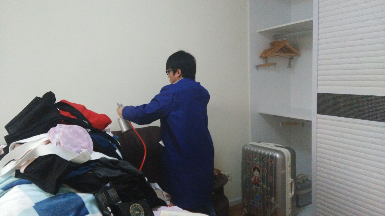 针对其结构特点及污染情况,我公司技术及施工人员采用专项专治的施工方案,针对重点污染区域,重点治理,例如鞋柜、儿童床、床垫。针对其墙面、沙发使用我公司研发的利纯光触媒进行甲醛清除,这些地方光照量较充足,便于光触媒对甲醛的分解,对于刷漆的家具、书桌、衣柜、木门等采用甲醛清除剂进行处理,针对不同污染物,做分别处理。经过我公司重点治理,一周后复查结果各种有害物质含量均已达到国家标准以内,为业主清理甲醛,还顾客一个安全,健康的生活环境是我们全体工作人员的责任,下面为施工现场照片: