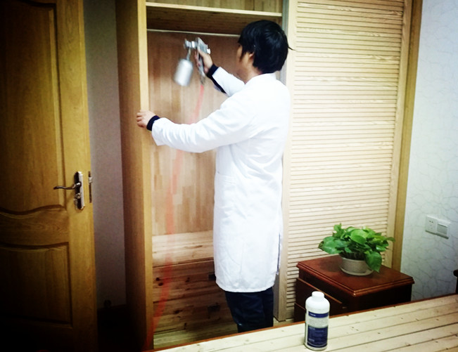 针对其结构特点及污染情况,我公司技术及施工人员经过认真考察,制订了详细的的施工方案,针对易散发甲醛等有害物质的污染源,重点治理,对粉刷的墙面、使用壁纸的墙面,沙发,窗帘等,使用我公司研发的利纯纳米光触媒进行甲醛清除,这些地方光照量较充足,便于光触媒对甲醛的分解,对于办公家具、书桌、储物柜、木门、地板等采用甲醛清除剂进行处理,针对不同污染物,做分别处理。施工时我们认真细致,专业到位,且不怕产品消耗,权力以除甲醛为重点,经过我公司重点治理,女业主表示在治理完工后感觉舒服多了,在一周后的效果会更好,感觉气味明显消除,为业主清理甲醛,还顾客一个安全,健康的生活环境是我们全体工作人员的责任,下面为施工现场照片: