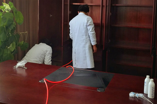 2017年7月14日,我公司接到浙江工业大学相关负责人的求助电话,具体情况为其新装修了一批办公室,购置了一些办公家具,在家具搬入后,房间内充斥着难闻的气味,且经久不散,开窗,通风,摆放绿色植物,仍然没有效果,严重影响了办公室教职工的身体安全,接到求助后,我公司立刻引起高度重视,派经验丰富的工程师去现场实地考察,记录并发现问题,从工作人员从现场收集的相关信息得知,办公室内设许多办公家具,且定制的的书柜数量较多,那使用的板材量也较多,且家具都是经过喷漆处理,墙面面积较大,又是粉刷体,而且重要的一点,房屋结构虽然合理,但空间相对较小,不封闭,通风系统不好,由于急于入住新的办公区域,且新添的部分家具,气味重,油漆浓,教职工人员感觉不适。考虑到甲醛直响了工作人员的的身体健康,甲醛问题就一定要解决。我公司根据情况制定最优化的治理方案。对污染物进行全方位的处理。